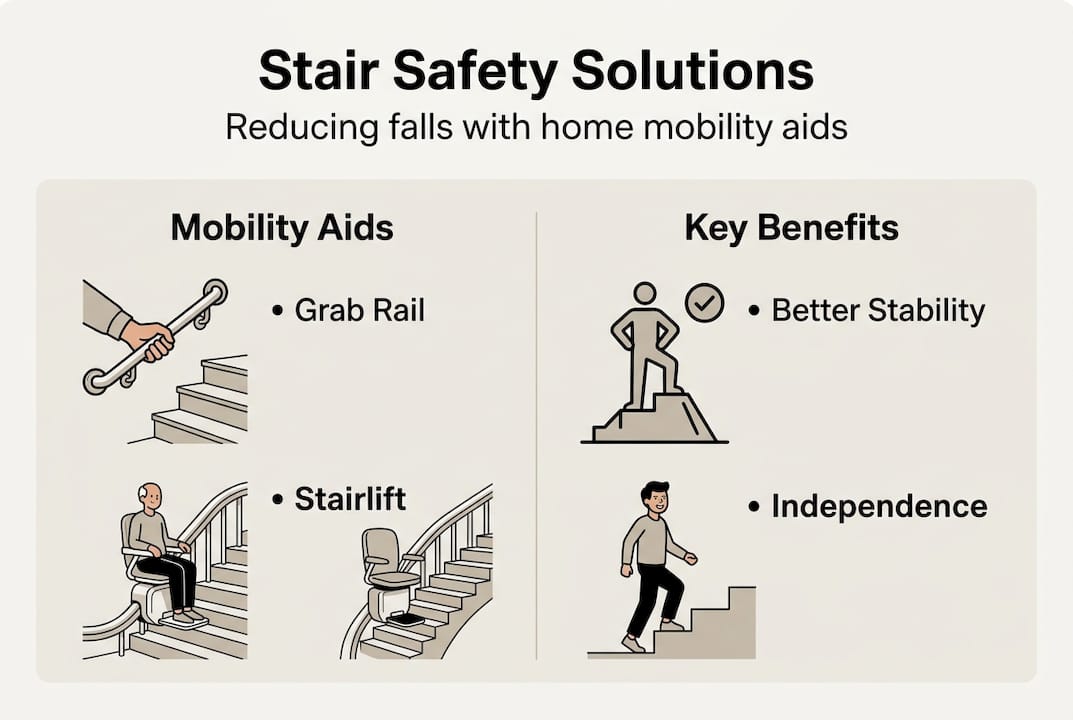 - Mobility aids like stairlifts improve safety, confidence, and independence at home.