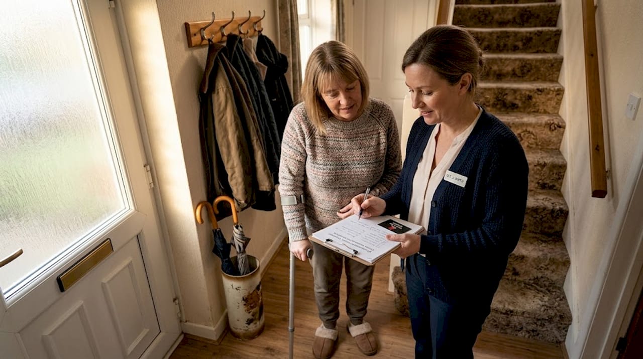 A home assessment can be arranged through your local council's adult social care team, your hospital discharge team, or privately. It is often available at no cost through NHS channels. The assessor will check doorway widths, stair configuration, bathroom layout, and furniture height to recommend exactly what your home needs.
